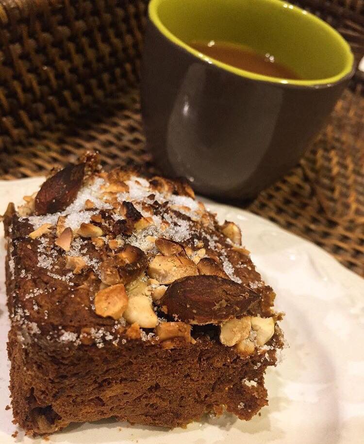 A száraz összetevőket elkeverem, külön tálban a folyékony hozzávalókat is majd az egészet homogén állagúra összedolgozom. Egy tűzálló edényt kókuszolajjal kikenek, beleöntöm a masszát majd a tetejét megszórom a választott tört csonthéjassal. Előmelegített sütőben 180 fokon nagyjából fél óra alatt készre sütöm. Amikor a teteje repedezik, akkor már kivehető a sütőből. Steviával vagy porrá őrölt eritrittel meghintem a tetejét. Amikor kihült szépen szeletelhető. Akár szilikon muffinformákba öntve is elkészíthető.